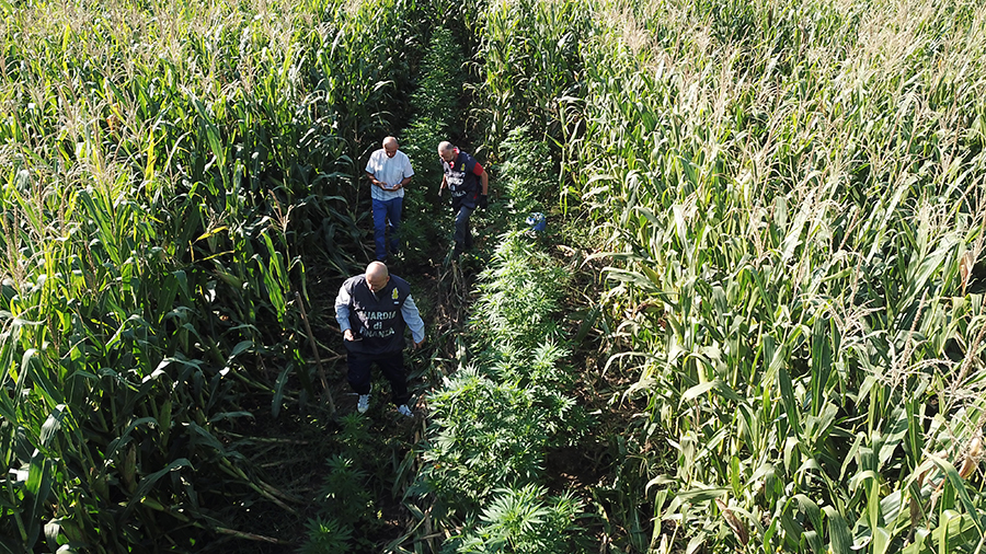 SAN TAMMARO (Caserta) – Più di 30 piante di marijuana di altezza media pari a 1,5 metri erano state coltivate all’interno di un vasto appezzamento di terreno seminato a granturco. Un “innesto” vegetale abilmente effettuato nel mezzo del campo, praticamente invisibile dall’esterno.