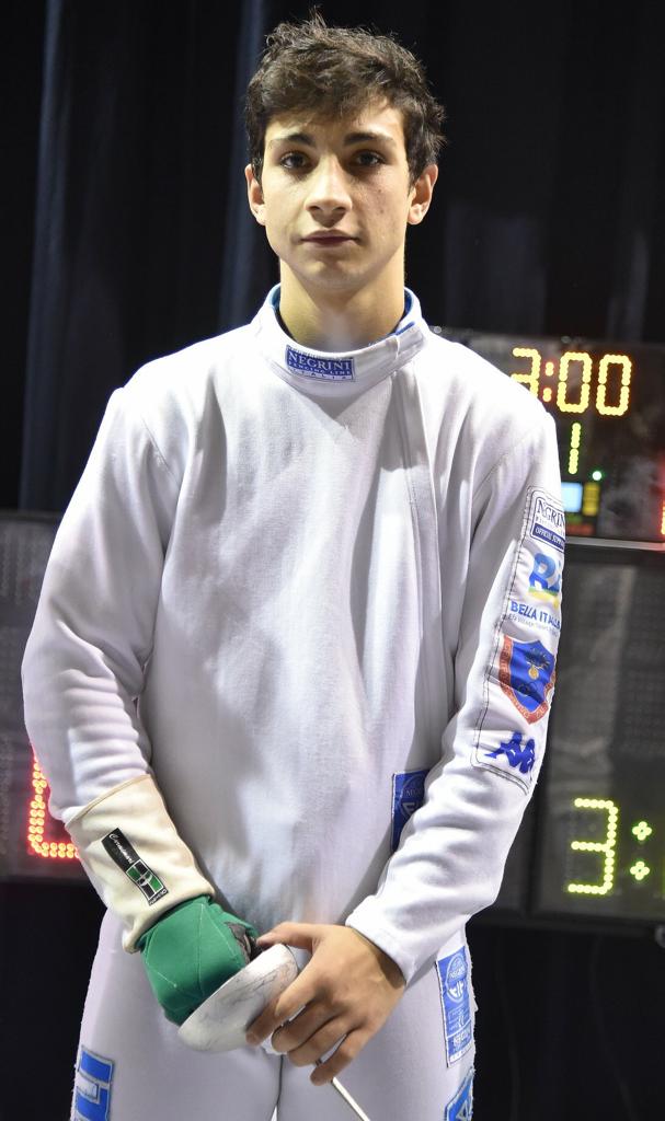 Nel turno dei 64 supera senza problemi Giacomo Tullio per 15-9, nel turno dei 32 si prende qualche rischio vincendo in rimonta 15-14 con Daniele Fontana delle Fiamme Oro Roma.