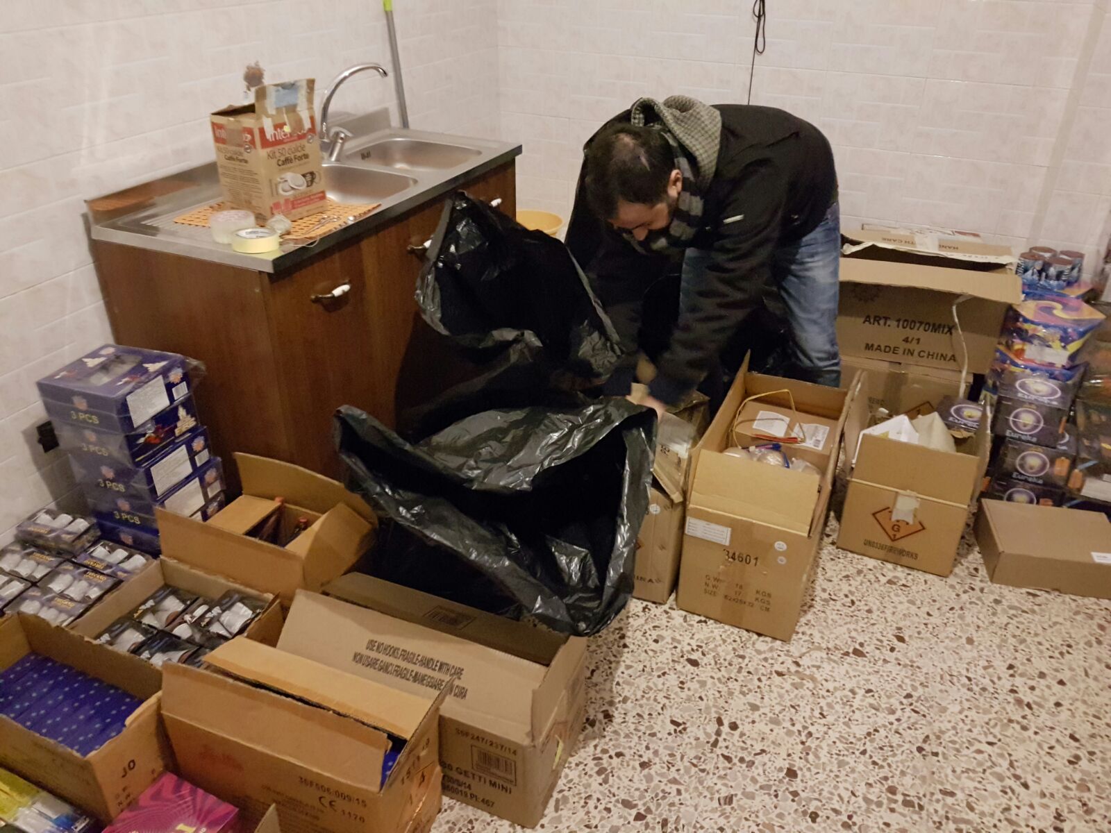 Nell’occasione oltre ai 10.000 botti già pronti per la vendita, venivano sequestrati diversi macchinari per il confezionamento dei petardi e ben 750 chilogrammi di polvere nera in via di miscelazione.
