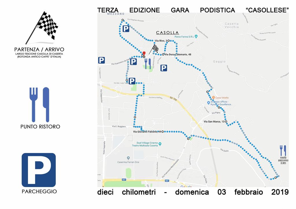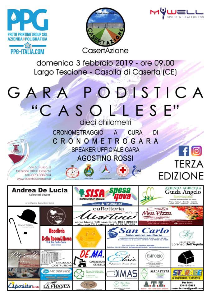 Tutto pronto a Caserta per il via della terza edizione della Gara Podistica Casollese, promossa e organizzata da Casertazione, il cui via è previsto per domenica 3 febbraio, con i preliminari e la partenza fissati tra le ore 8.30 e le ore 9.00 in largo Tescione a Casolla.