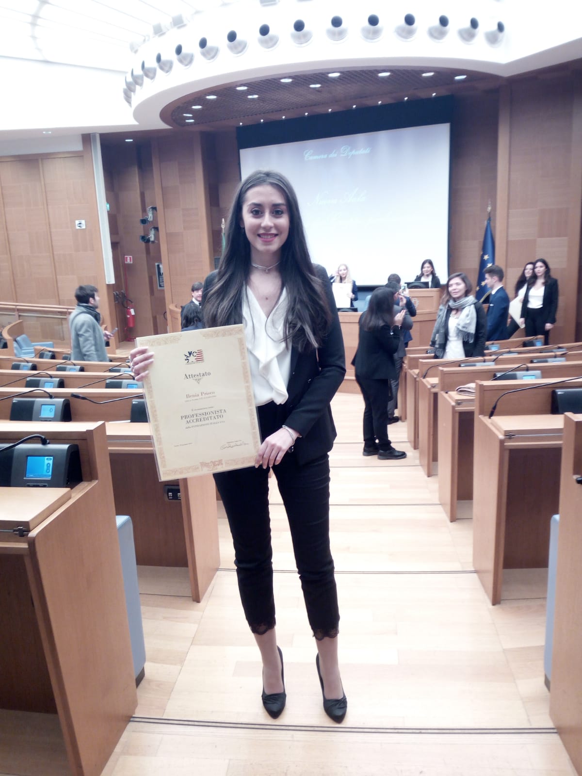 Lo scorso 28 gennaio, alla Camera dei Deputati, si è svolta la Cerimonia di premiazione dei giovani meritevoli italiani, selezionati dalla Fondazione Italia-Usa, tra i laureati che hanno ottenuto il massimo dei voti in discipline, ritenute di interesse dalla Fondazione stessa. A loro e` stato conferito un certificato di  Professionista Accreditato ed e` stato regalato un master del valore di 4mila euro in “Marketing, Comunicazione e Made in Italy”, tenuto dal ministro dell’istruzione Stefania Giannini. Tra i premiati Ilenia Prisco, luscianese di 24 anni, laureata con 110 e lode in Scienze Politiche e laureanda in International Relations presso l’università degli studi di Napoli Federico II.