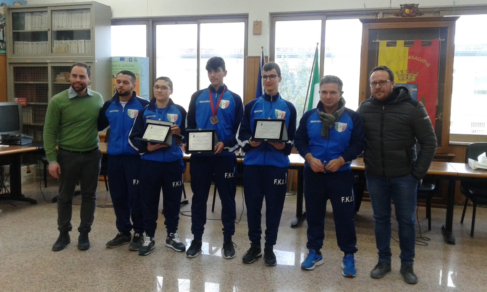 Martedì scorso gli atleti della compagine sportiva, Arturo Terenya, Daniele Genovese, e Giovanni Riccardo, insieme al maestro Michele Cappella e all’istruttore Luigi Genovese, sono stati premiati con una targa nella Sala Consiliare del Comune di Casagiove dal Sindaco Roberto Corsale e dal Consigliere delegato dello Sport Ernesto Mese per i notevoli risultati ottenuti ai Campionati Europei svoltisi in Slovenia a San Bernardino il 5 dicembre scorso.