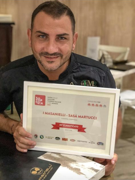 C’erano giorni in cui zuppo fradicio di acqua per la pioggia non avevi nemmeno la riconoscenza della gente per asciugarti, ma questo non mi fermava anzi mi dava sempre più voglia per realizzare il mio sogno”. Non a caso nel 2001 poco più che maggiorenne la famiglia Martucci finalmente corona il suo sogno aprendo una pizzeria propria in Via Acquaviva sempre a Caserta con forno a legna, l’impostazione è quella della pizza a taglio, anche d’asporto e con la consegna a domicilio. Così comincia la storia dei “Masanielli” e Sasà comincia la sua scalata verso una “carriera” che già si delinea importante “Faccio il banconista, mi occupo delle consegne e sono orgoglioso di dare il mio contributo in una realtà dove c’è l’apporto di tutti. Mio fratello Francesco come pizzaiolo, mia sorella Sabina e mamma Maria invece in cucina che si occupano anche della friggitoria. La mamma è stata una guida morale e lavorativa per noi, un esempio ed un vero supporto”. Ma nel 2007 Sasà decide di dare la svolta alla propria vita lavorativa lasciando i “Masanielli” come ci spiega lui stesso “Eravamo in tanti nella nostra attività ed io volevo crescere e crearmi una mia vita senza dipendere sempre dalla famiglia. L’ho fatto per una crescita professionale perché andando al “Solito Posto” di Franco Pagliaro per 5 anni mi sono formato definitivamente, ho appreso tanto, e nel corso di questi anni sono riuscito ad essere il responsabile dei pizzaioli”. Diventato ormai l’elemento di punta dell’arte bianca, pizzaiolo in rampa di lancio e con un bagaglio d’esperienza ormai ben solido nel 2012 rientra nella pizzeria di famiglia per un motivo ben preciso “C’era il rischio che la nostra attività poteva chiudere perché Francesco decise di aprire una pizzeria tutta sua molto più grande. Una pizzeria ormai affermata come la nostra non poteva scomparire e quindi decido di prendere io le redini in mano dell’attività che aveva quindi bisogno di una figura come la mia”. L’attività continua ad avere successo tant’è che nel 2014 Sasà con la famiglia decidono di trasferirsi un po più avanti ma sempre a Via Acquaviva in un locale più grande con 20 coperti, senza abbandonare però l’impostazione iniziale della pizzeria. La fase di crescita è esponenziale e nel 2016 preso anche dall’effetto nostalgia a Sasà viene la pazza idea di trasferirsi nei locali che lo hanno visto crescere a Via Vivaldi, a pochi metri da Via Acquaviva. Si passa da 20 a ben 140 posti “Ho voluto cavalcare l’onda positiva della pizzeria di famiglia, ormai ero pronto al grande passo ed a soddisfare la grande clientela che già affollava la nostra vecchia pizzeria. Mi è venuto subito in mente di realizzare questo progetto dove tutto ha avuto inizio per me, ovvero quei locali che ospitavano mio zio Francesco e dove sono cresciuto professionalmente e mi hanno visto diventare quello che sono oggi. Finalmente inizio a gestire un locale tutto mio, vedo coronare un sogno fatto di sacrifici con i piedi però sempre ben saldi a terra”. Dal 2007 dove Sasà è un semplice apprendista al 2016 dove lo stesso è un pizzaiolo affermato con un locale tutto suo, uno staff fidato di circa 20 persone ma che lo vede sempre in prima linea ad “ammaccare” ogni singola pizza come lui stesso spiega “Ho uno staff di primo livello di cui mi fido ciecamente e con il quale c’è confronto quotidiano, non si smette mai di imparare e non mi sento arrivato ed è questo il motivo dell’essere sempre il primo a lavorare la pizza”. Una gavetta che parte dal basso e che lo porta ad un successo magari insperato molti anni prima ma voluto fortemente, Sasà Martucci infatti senza mai dimenticare da dove è venuto proprio per questo motivo partecipa a molti eventi anche di natura benefica e grazie alla sua umiltà nel 2018 si è piazzato al 45esimo posto nella prestigiosa classifica 50 top pizza che premia le migliori pizzerie d’Italia e del mondo. “Un premio prestigioso per me e per il mio staff che ci stimola a fare sempre meglio – afferma Sasà – però il premio che più mi fa contento ogni giorno è avere il locale sempre pieno di gente, con i clienti che fanno anche lunghe file pur di mangiare la nostra pizza. Questo è davvero un attestato di fiducia che non ha prezzo”. Sasà Martucci è infatti sinonimo di ricerca, sia nei prodotti inteso come materia prima sia per gli impasti, non a caso è uno dei pochi pizzaioli in zona casertana che tiene stage ed è docente esterno presso la scuola di cucina “Dolce & Salato” a Maddaloni. A soli 36 anni il Martucci è ormai una vera icona della pizza, una pizza creata ad immagine e somiglianza dell’idea di famiglia e che incarna a pieno il pensiero di Sasà, Via Vivaldi a Caserta lo si può tranquillamente affermare a gran voce è un vero è proprio luogo di culto del genere.