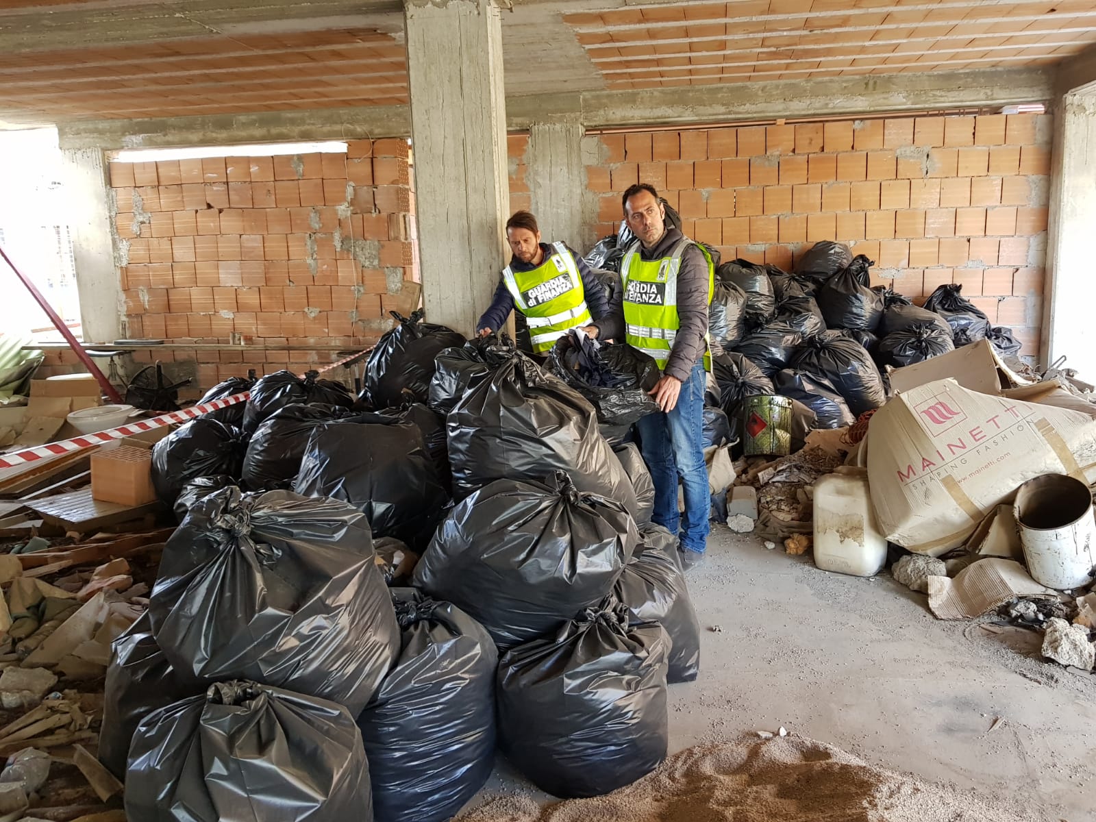 O anche il laboratorio dove operavano 13 lavoratori in nero sui 15 totali e che ammassava gli scarti di lavorazione in bustoni neri accatastati al piano superiore del fabbricato, ancora grezzo e privo di muri perimetrali. La discarica improvvisata, dove sono stati sequestrati oltre 1.200 kg di rifiuti, era del tutto visibile dai palazzi adiacenti, contribuendo a deturpare ulteriormente il già precario decoro urbano dell’area.