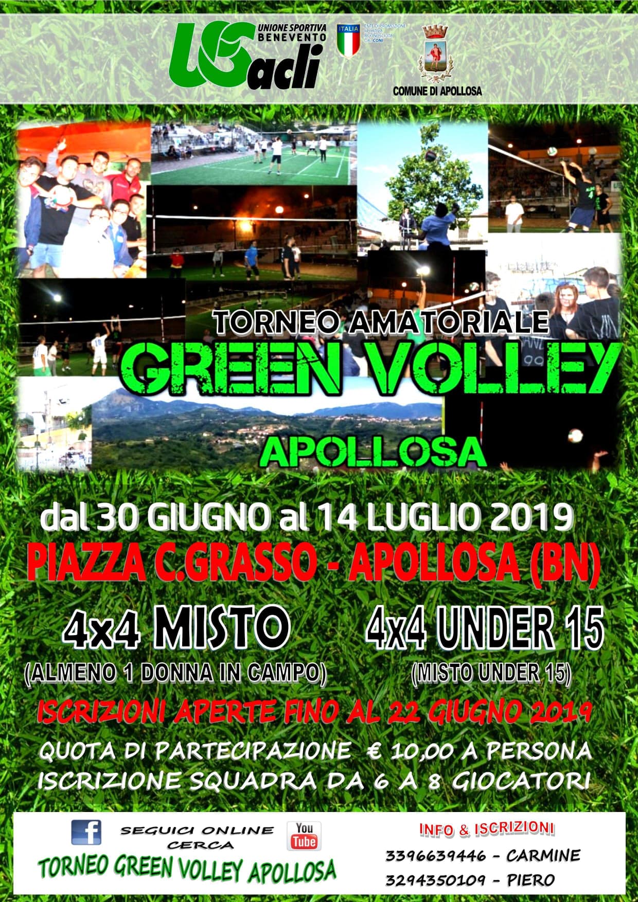 L’US Acli provinciale di Benevento, con il patrocinio del Comune di Apollosa, presenta l’edizione n.13 del Torneo di Green Volley.
