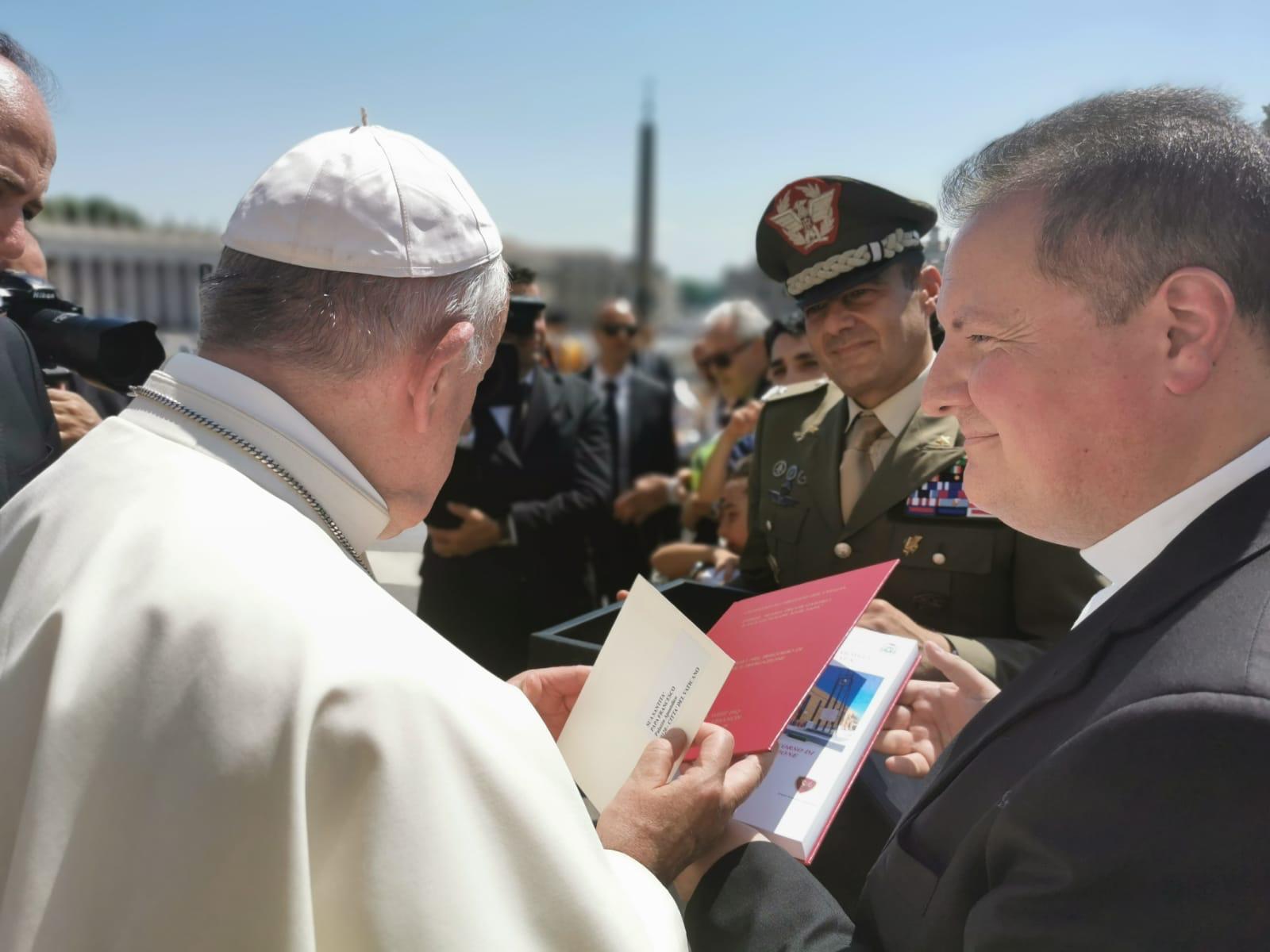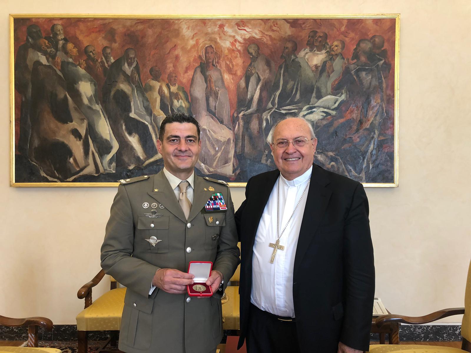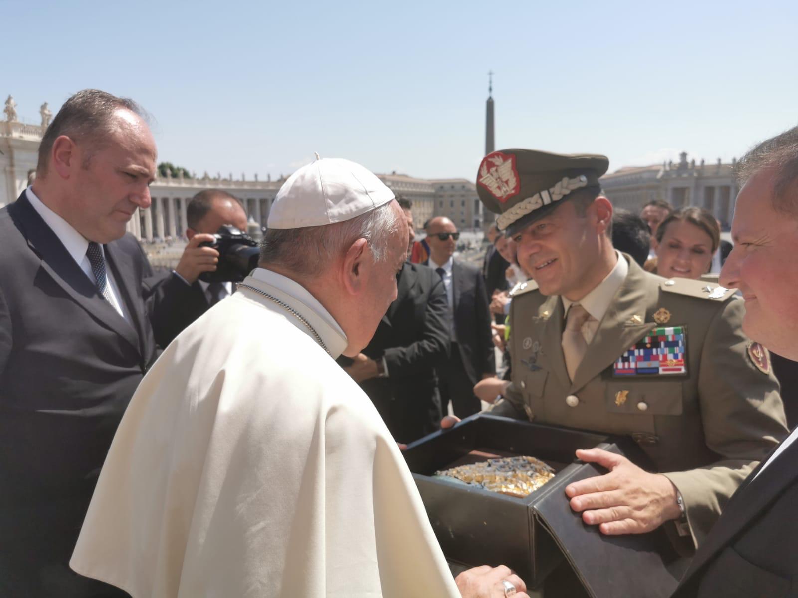 Caserta, 27 Giugno 2019 – Papa Francesco ha voluto incontrare personalmente, al termine dell’Udienza Generale tenuta ieri in Piazza San Pietro, il Comandante della Brigata Bersaglieri “Garibaldi”, Generale di Brigata Diodato Abagnara, accompagnato dal Cappellano Militare don Claudio Mancusi, rientrati di recente dall’operazione “Leonte XXV” della Missione UNIFIL in Libano, dove la Brigata “Garibaldi” ha avuto la responsabilità della Joint Task Force-Lebanon Sector West.