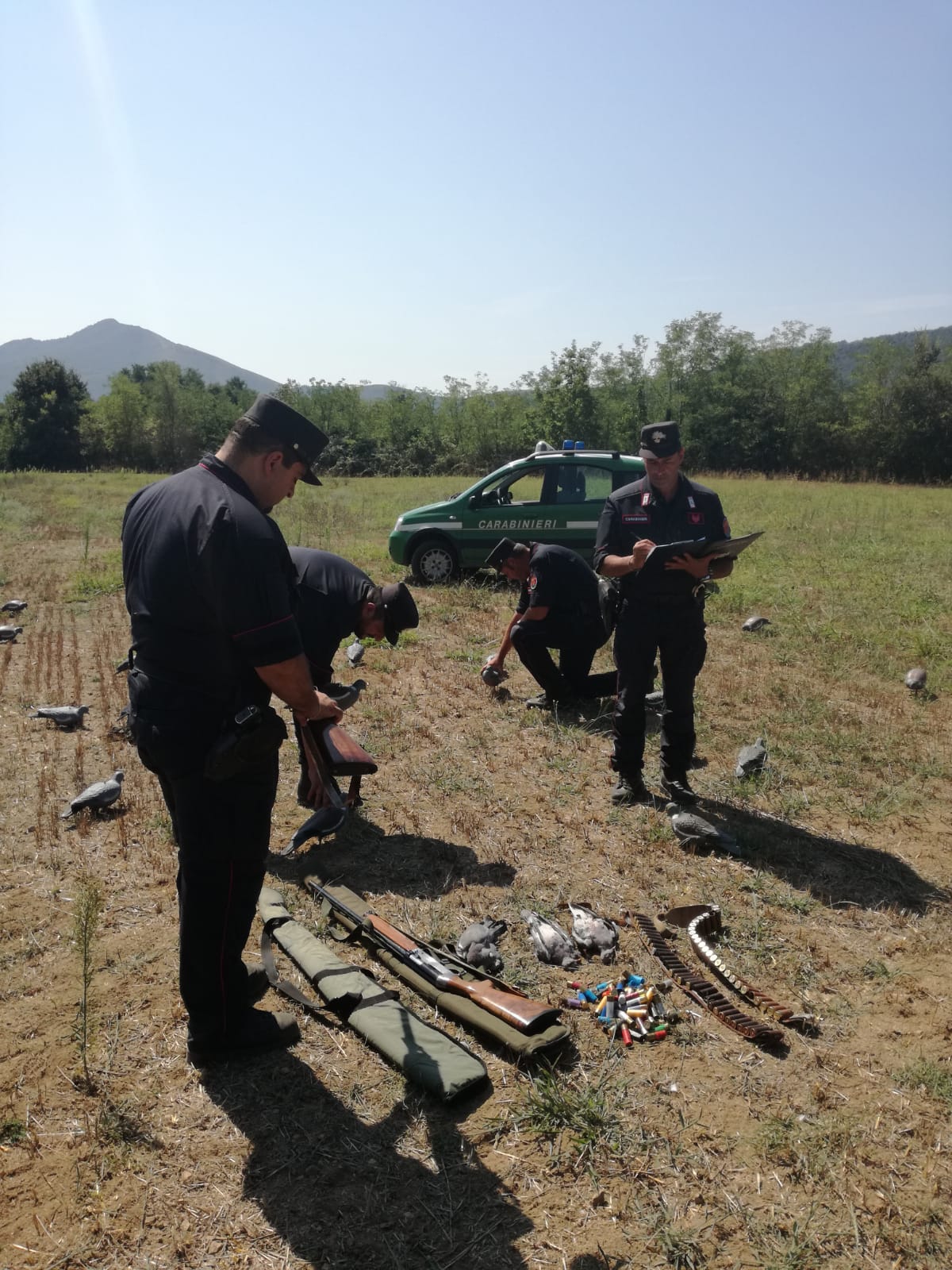 Militari appartenenti alle Stazioni Carabinieri Forestale di Caserta e di Formicola hanno svolto un servizio di controllo in materia venatoria in comune di Pontelatone (CE), alla località “Midonna”, laddove hanno proceduto al sequestro giudiziario d’iniziativa di nr. 2 fucili da caccia calibro 12, n. 106 cartucce calibro 12 cariche, n. 20 stampi in plastica riproducenti la specie colombaccio e n. 3 esemplari di Colombaccio appena abbattuti (ancora caldi).
