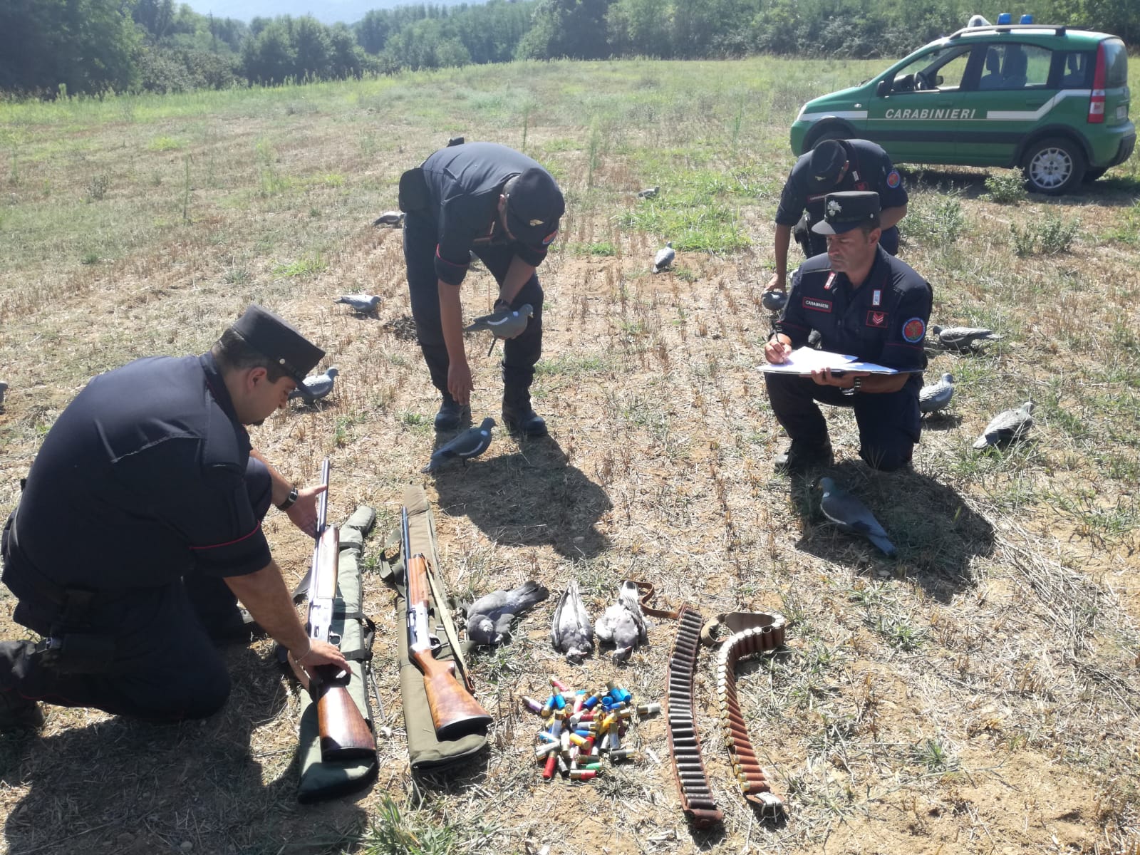 In particolare i Carabinieri Forestali hanno sorpreso i due bracconieri mentre stavano esercitando la caccia al Colombaccio utilizzando venti stampi in plastica riproducenti la specie colombaccio, posizionati in un campo agricolo, per attirare i volatili selvatici sotto il tiro incrociato dei loro fucili ed abbatterli. I due soggetti sono stati rinvenuti in possesso di nr. 3 esemplari di Colombaccio appena abbattuti frutto dell’illecita attività venatoria dagli stessi esercitata. Infatti, la specie Colombaccio, in questo specifico periodo dell’anno (periodo di preapertura della stagione venatoria), non è cacciabile.