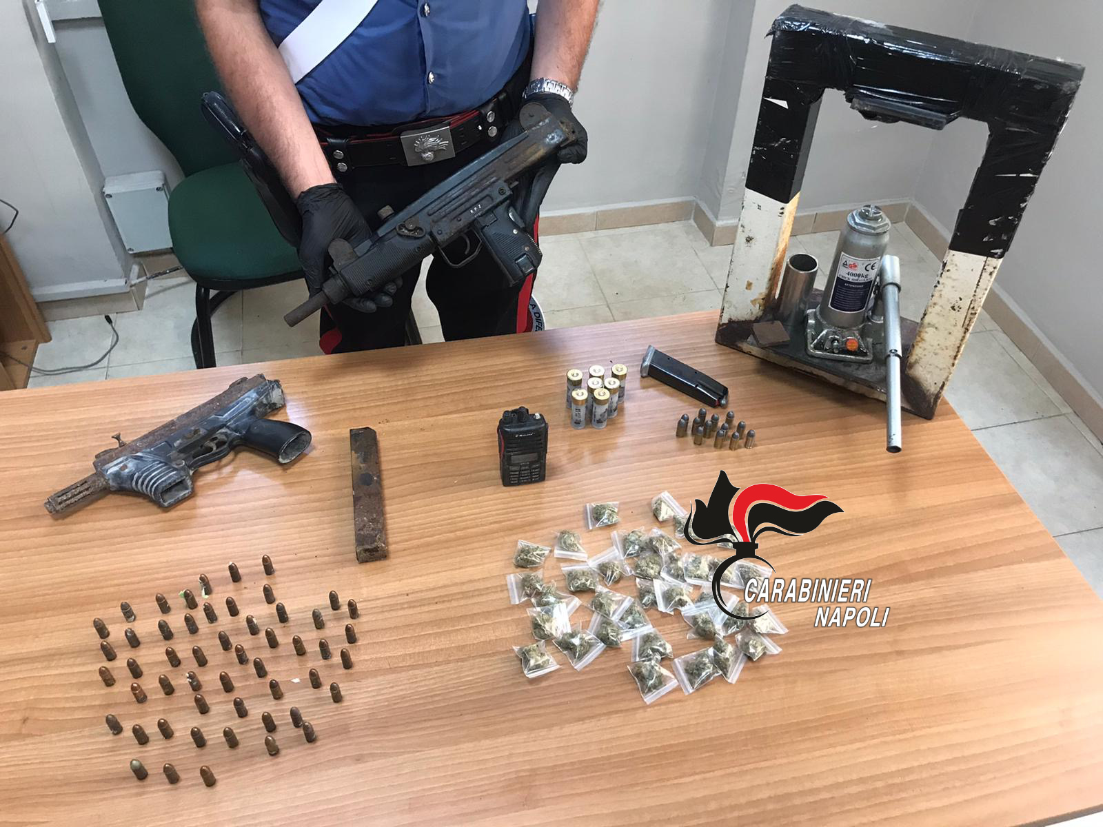 I Carabinieri ed i Vigili del Fuoco sono entrati nel cuore del quadrilatero ed hanno trovato un caricatore con proiettili, varie cartucce calibro 12 e 30 dosi di marijuana.