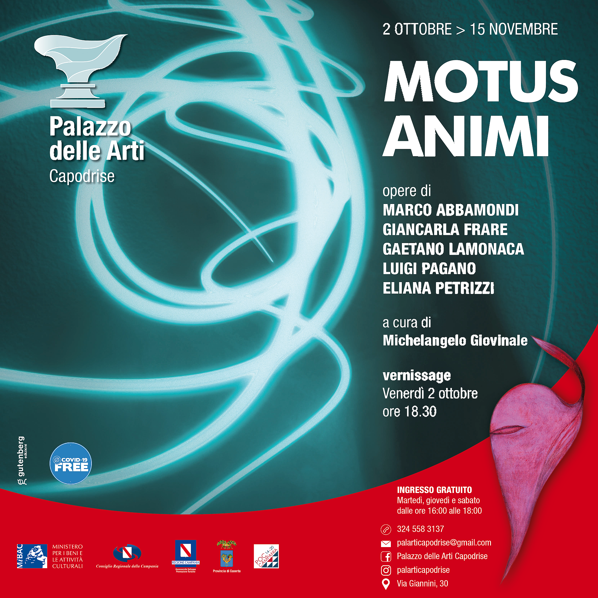CAPODRISE. Ci contamini la cultura! Dal Palazzo delle Arti di Capodrise arriva un messaggio positivo, l’assessore Luisa D’Angelo conferma per il 2 ottobre, alle 18:30, il vernissage della mostra “Motus animi”, a cura di Michelangelo Giovinale, schede biografiche di Rosa Bencivenga. Nello spazio di via Giannini, in esposizione, fino al 4 aprile, opere di Marco Abbamondi, Giancarla Frare, Gaetano Lamonaca, Luigi Pagano ed Eliana Petrizzi. «In “Motus animi” – afferma Giovinale – lo spettatore è trascinato nella dinamica delle emozioni, in uno spazio che supera il dualismo interno/esterno e dove la narrazione espositiva conserva un profilo di essenzialità tipico delle tonalità emotive, quali strati profondi dell’umano». Cinque artisti per cinque sensibilità, inquiete e visionarie, che sperimentano nuovi linguaggi del vedere e del sentire e offrono una chiave ermeneutica per decifrare le cavità più buie della psiche.