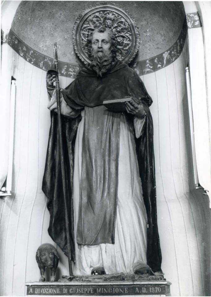 Fin da bambino, quando mi recavo presso la Chiesa dell’Arciconfraternita di Sant’Antonio di Padova con mia nonna, per prendere parte alla Santa Messa o per recitare la tradizionale “Tredicina” al Grande Taumaturgo di Padova, restavo sempre attirato dalle non poche statue presenti nella piccola chiesa. In particolare, l’effige raffigurante sant’Antonio Abate, protettore degli animali domestici, mi aveva sempre particolarmente incuriosito non soltanto per la bellezza del volto “ieratico” e per l’assenza del grazioso maialino (purtroppo trafugato), ma soprattutto per la scritta apposta sulla base della statua: A DIVOZIONE DI GIUSEPPE MINGIONE A. D. 1870. Il buon Francesco Petriccione, da tutti ricordato con sincero affetto specialmente per la sua profonda devozione verso Il Santo di Padova, mi raccontava che a donare la statua del Santo anacoreta, così come quella del Bambinello portata in processione nel giorno dell’Epifania, era stato un ex priore della Congrega, Giuseppe Mingione. Delle statue menzionate nel documento, tre in particolare non sono più presenti nella chiesa dell’Arciconfraternita (santa Rosa, santa Teresa e l’Addolorata), mentre l’altare che ospitava la statua dell’Addolorata, oggi ospita la pregevole scultura del Bambinello posta in una artistica “portantina” in rame e perline. Ora ho conosciuto realmente l’animo fedele e devoto di questo uomo, Giuseppe Mingione, il quale, attraverso la sua donazione libera e del tutto spontanea, non solo ha incrementato il corredo iconografico all’interno della chiesa della Congrega di Sant’Antonio di Padova, ma, sono convinto che abbia pure esaltato ancor di più il nome dell’Altissimo, perché l’arte, sacra in particolar modo, riesce ad avvicinare maggiormente Cielo e Terra.