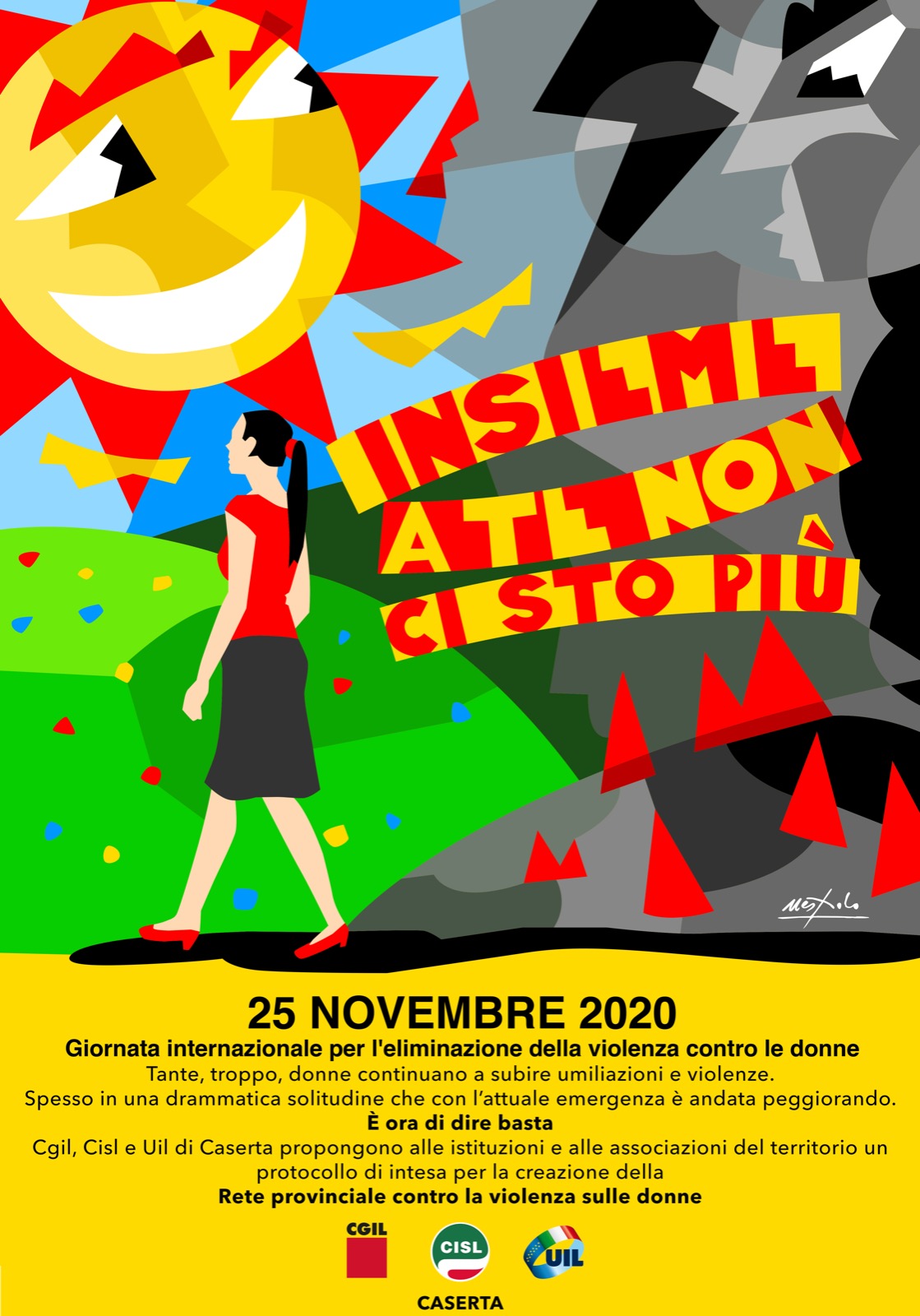 In occasione della giornata internazionale contro la violenza sulle donne, istituita dall’Onu nel 1999, CGIL CISL e UIL di Caserta, insieme alle amministrazioni comunali della provincia e a numerose associazioni territoriali hanno promosso l’attivazione di un protocollo contro la violenza di genere nella convinzione che per per favorire e consolidare lo sviluppo di una cultura contraria a ogni forma di violenza è necessario promuovere un confronto e collaborazione tra Istituzioni, Centri Antiviolenza, Servizi, Enti, e Associazioni.