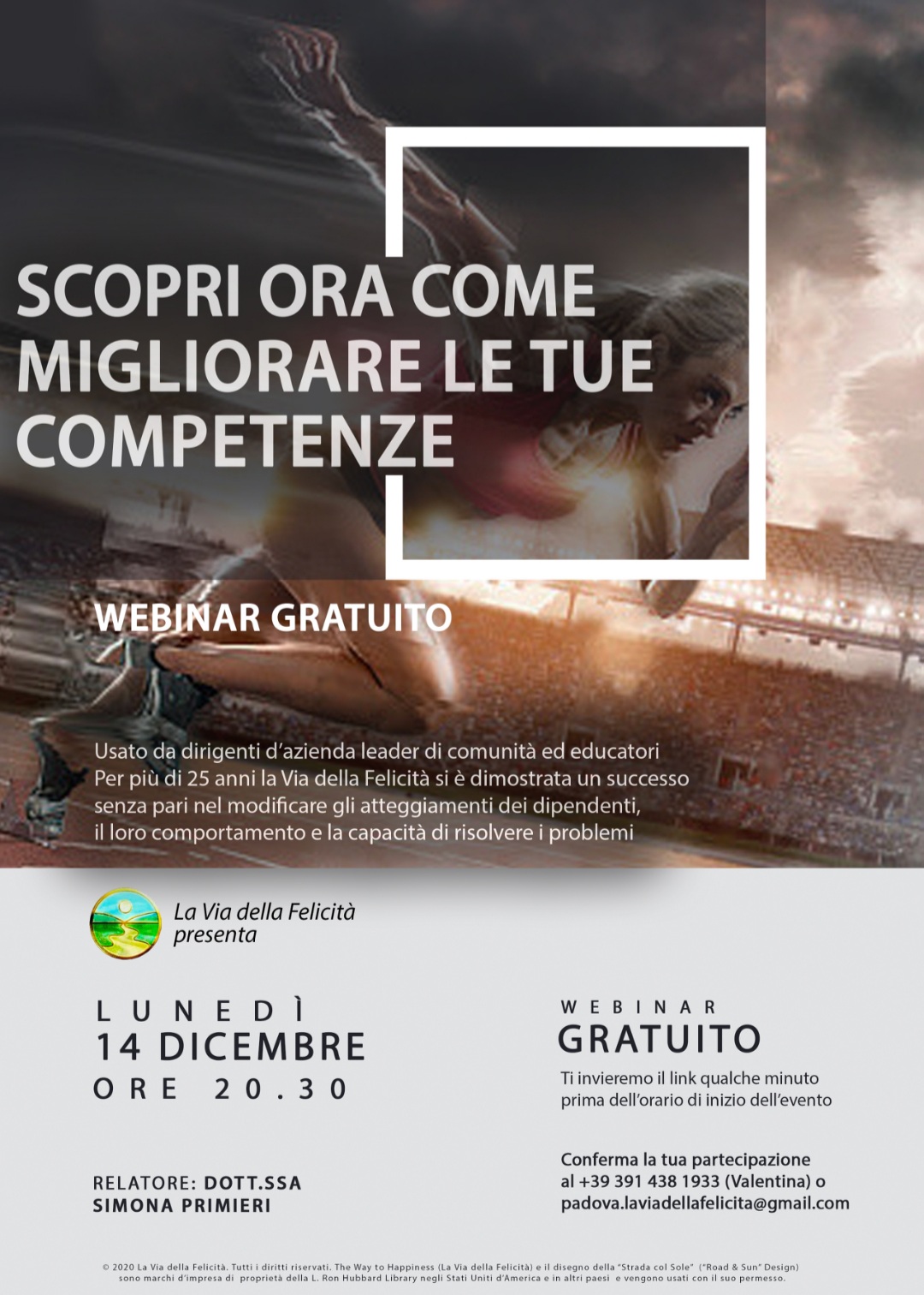 Per questo i volontari della Fondazione La Via della Felicità, organizzano un webinar informativo gratuito intitolato “Scopri ora Come Migliorare le Tue Competenze”.
