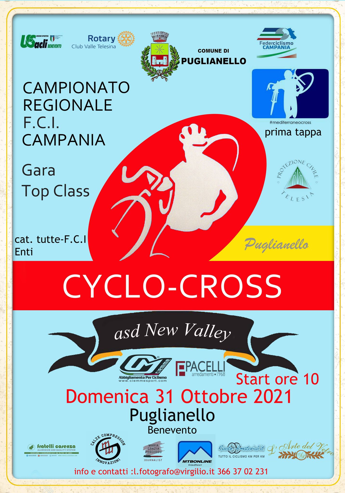 Dopo le precedenti esperienze tra il Parco del Rio Grassano e le Terme di Telese, il ciclocross nella valle telesina riparte da Puglianello con delle belle novità per l’appuntamento di domenica 31 ottobre, nel contesto del circus del Mediterraneo Cross 2021-2022 ed anche del rinato Campania Cross che ritorna ad organizzarsi dopo alcuni anni di stop.