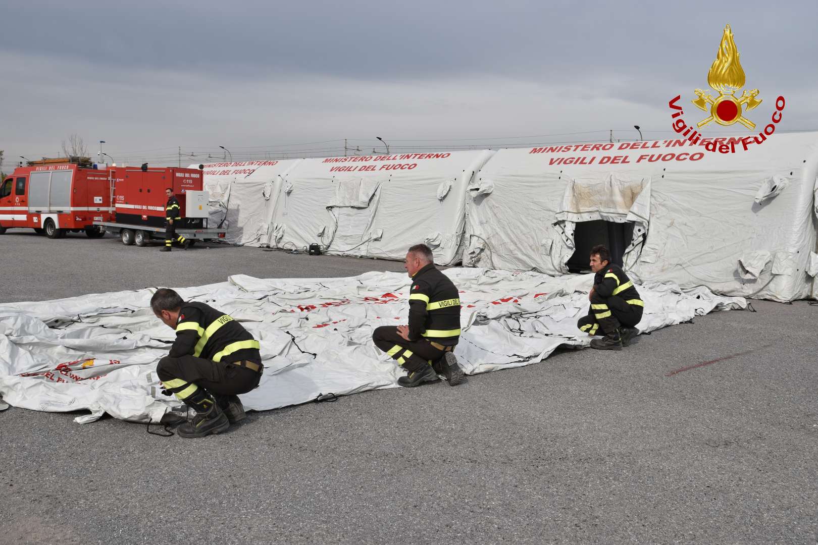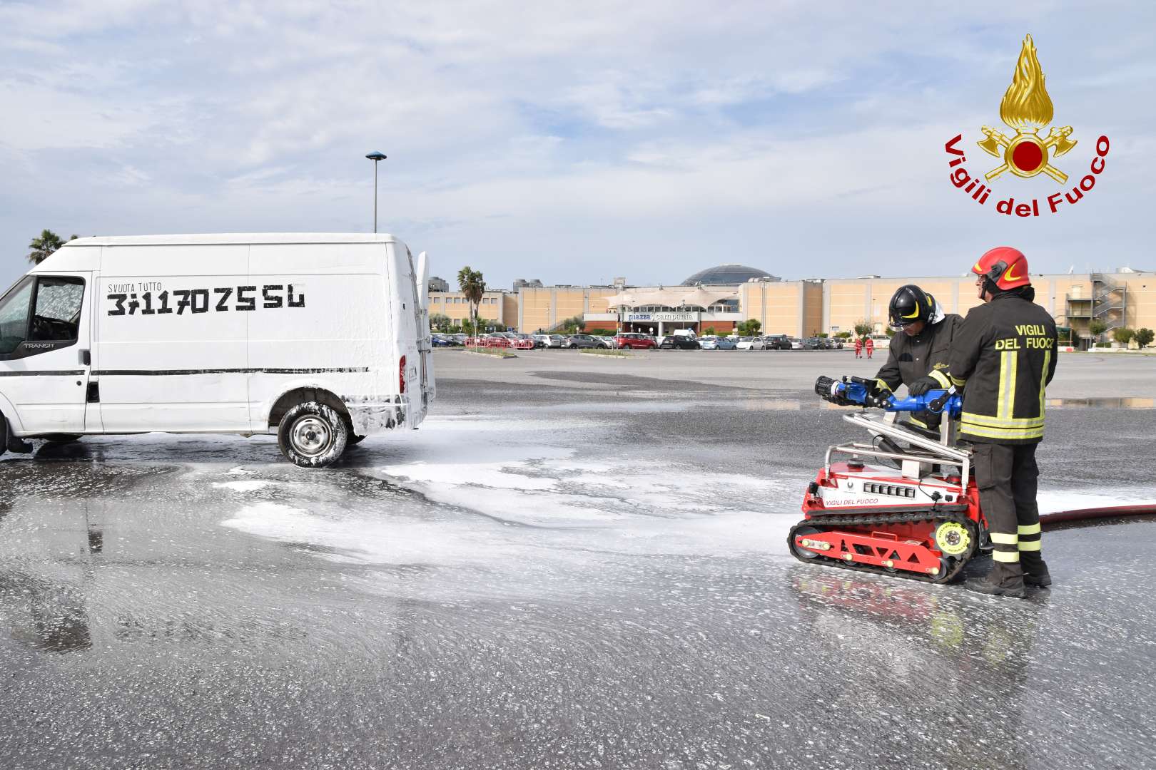 presso il parcheggio del centro commerciale Campania si sta allestendo un campo base e si stanno testando nuove strumentazioni per l’estinzione degli incendi; in località Pianoro di Camposauro si sta simulando la ricerca di una persona scomparsa in ambito montano con il nucleo Cinofilo, il nucleo S.A.P.R. (sistemi a pilotaggio remoto) ed il nucleo T.A.S. (topografia applicata al soccorso), presso l’interporto di Nola in prossimità del terminal ferroviario si simula un incidente con fuoriuscita di sostanza tossica da una ferrocisterna dove è interessato il nucleo N.B.C.R. (nucleo batteriologico chimico radiologico),