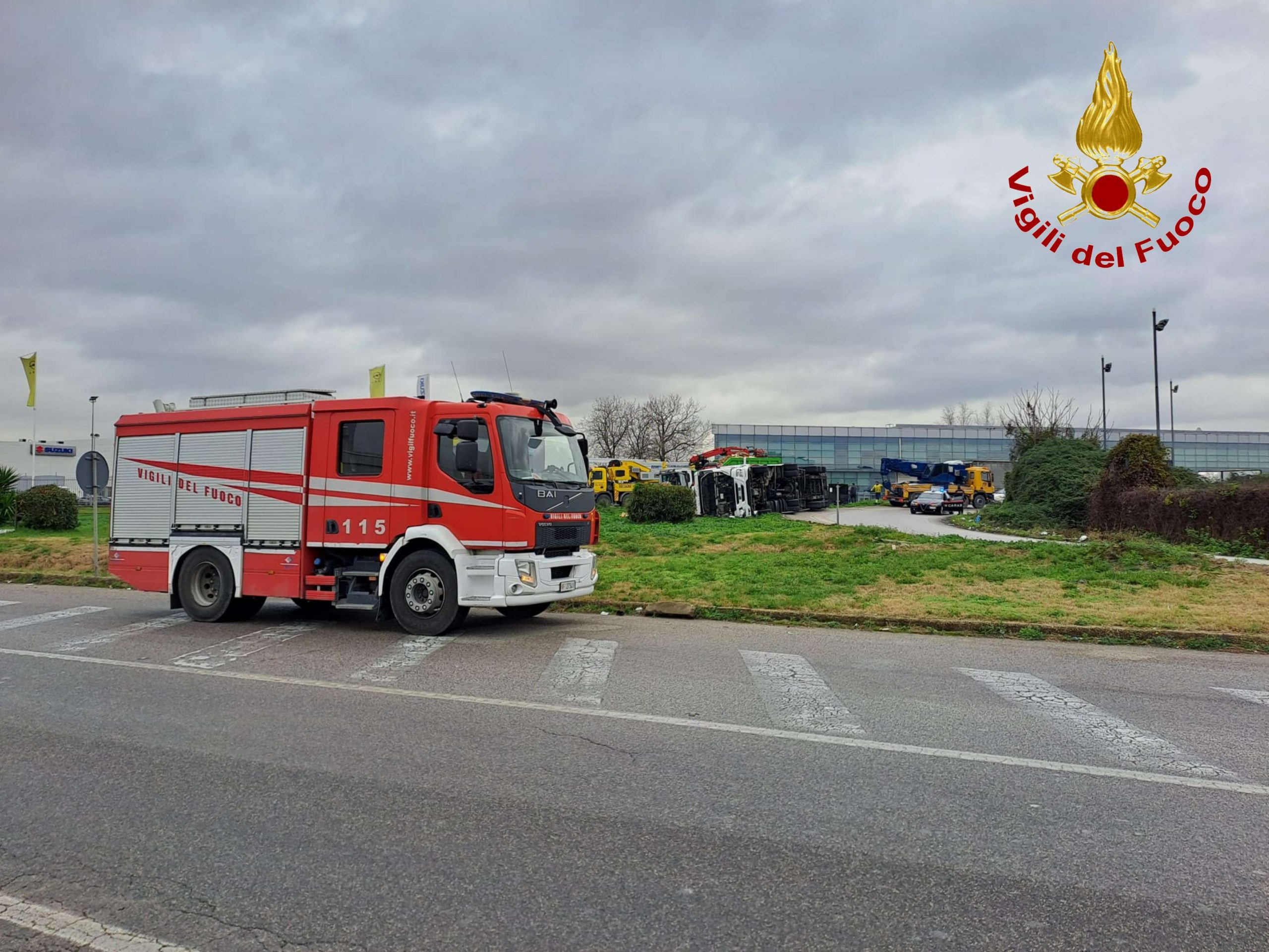 Caserta 15 Gennaio 2024 – Da questa mattina una squadra del Comando provinciale dei Vigili del Fuoco di Caserta, precisamente del distaccamento di Marcianise, è intervenuta sulla SS Sannitica nel comune di Marcianise, nella rotonda di raccordo con viale Carlo Terzo nei pressi del casello autostradale, per un’incidente stradale che ha visto coinvolto solo un autotreno. I Vigili del Fuoco, immediatamente giunti sul posto, hanno trovato l’autotreno che trasportava materiale vario di risulta ribaltato su un fianco e sul prato della rotonda, con all’interno del suo abitacolo il conducente ferito ma non incastrato tra le lamiere. Si provvedeva, pertanto, ad assistere il personale del 118 nelle prime operazioni di soccorso al ferito e a mettere in sicurezza il veicolo per il recupero da parte di ditte specializzate. L’intervento attualmente è ancora in corso e la strada è chiusa al traffico veicolare.