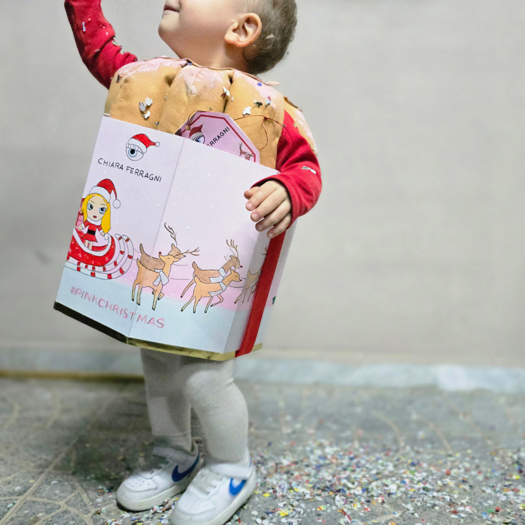 Ispirato al famoso pandoro “Pink Christmas” firmato da Chiara Ferragni, questo costume vuole ironizzare sul caso che ha coinvolto la famosa influencer e la casa dolciaria Balocco.