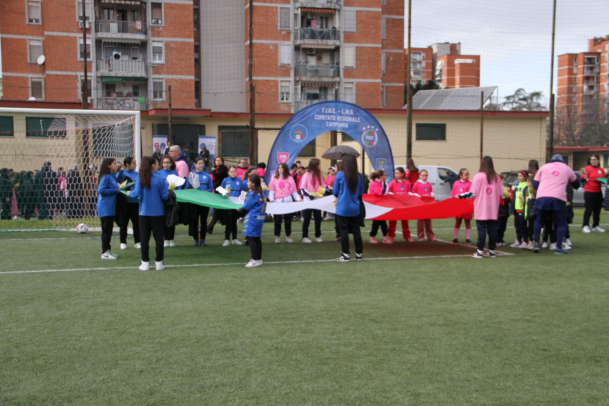 Il presidente del C.R. Campania FIGC LND Carmine Zigarelli ha accolto sul terreno di gioco tutti gli intervenuti: “Oggi è una giornata importante – ha spiegato Zigarelli -, perché qui da Scampia le società di calcio femminile della Campania insieme alle società e alle associazioni del territorio, alle istituzioni politiche, all’Ifel Campania e a tutte le componenti federali, con presidenti, allenatori, calciatori e arbitri, dicono uniti ‘no alla violenza sulle donne’”. Il presidente ha anche voluto, prima dell’incontro, un minuto di raccoglimento per le vittime di femminicidio.