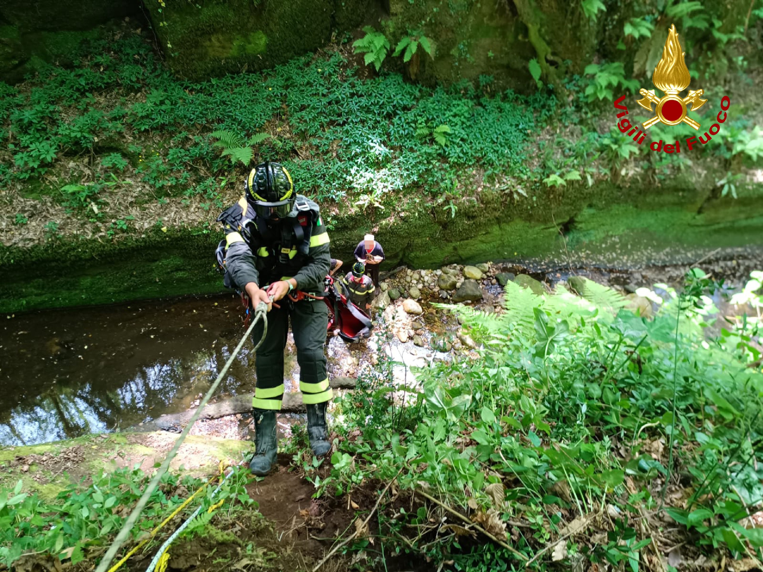 Una volta scesi nel fossato, i Vigili del fuoco hanno soccorso sia l’anziano proprietario, che aveva varie ferite ed escoriazioni, che il suo cagnolino, in buone condizioni ma ancora spaventato, per poi tirarli fuori dove vi era il personale del 118 pronto ad attendere l’anziano signore per le cure del caso.