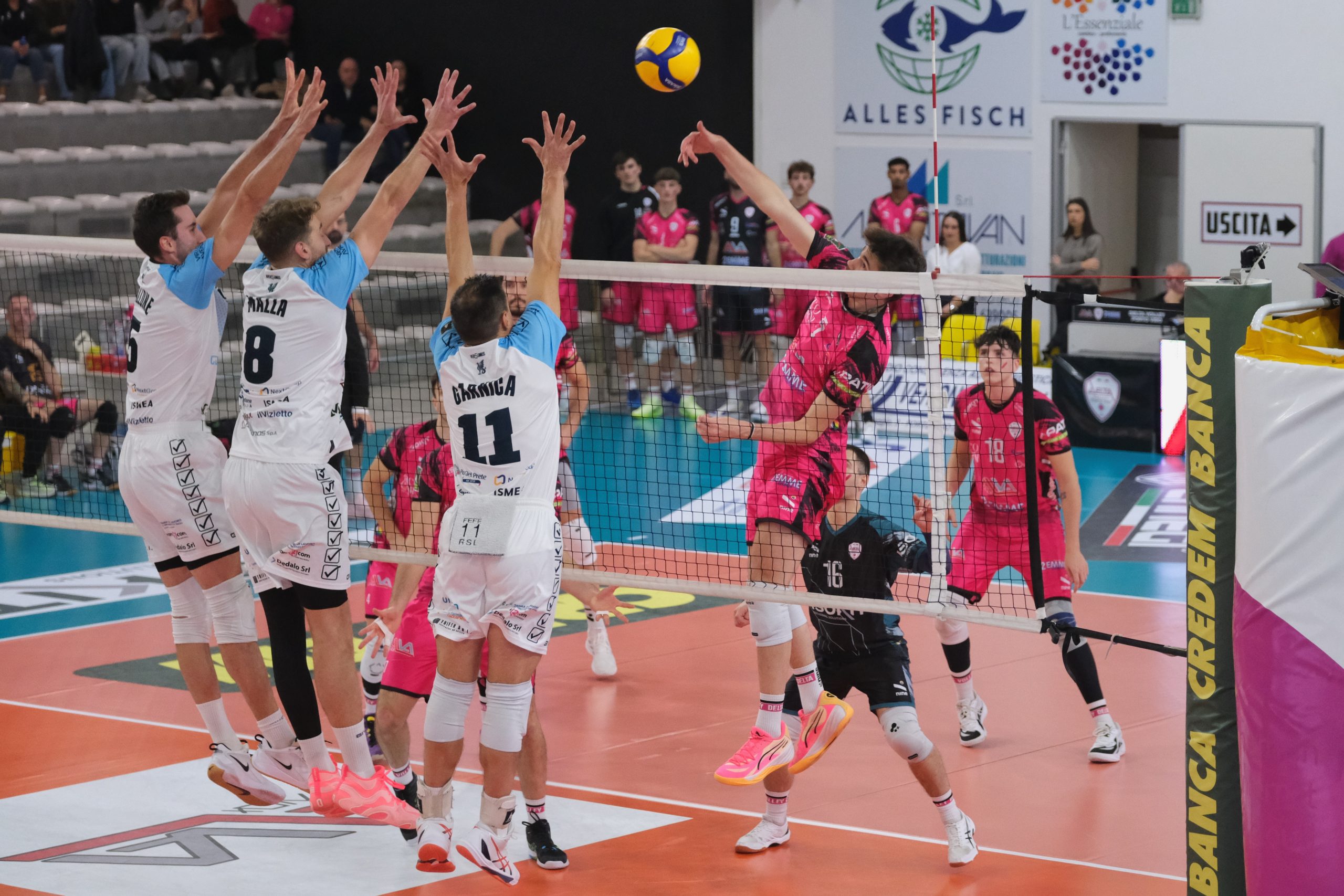 QUARTO SET. Aversa ritorna in campo con un atteggiamento nettamente diverso, subito allungo grazie al muro che non fa passare niente (6-10). Motzo vince un contrasto a rete e conferma le 4 lunghezze di vantaggio (9-13). Tiozzo sfrutta le mani del muro, Motzo blocca l’attacco avversario ed è 15-19. Dentro anche Minelli, dai 9 metri è ace (16-21). Tallone trova il diagonale perfetto per il 17-23. Garnica regala 4 possibilità per il tie-break, il primo è annullato ma non il secondo. E’ 21-25.