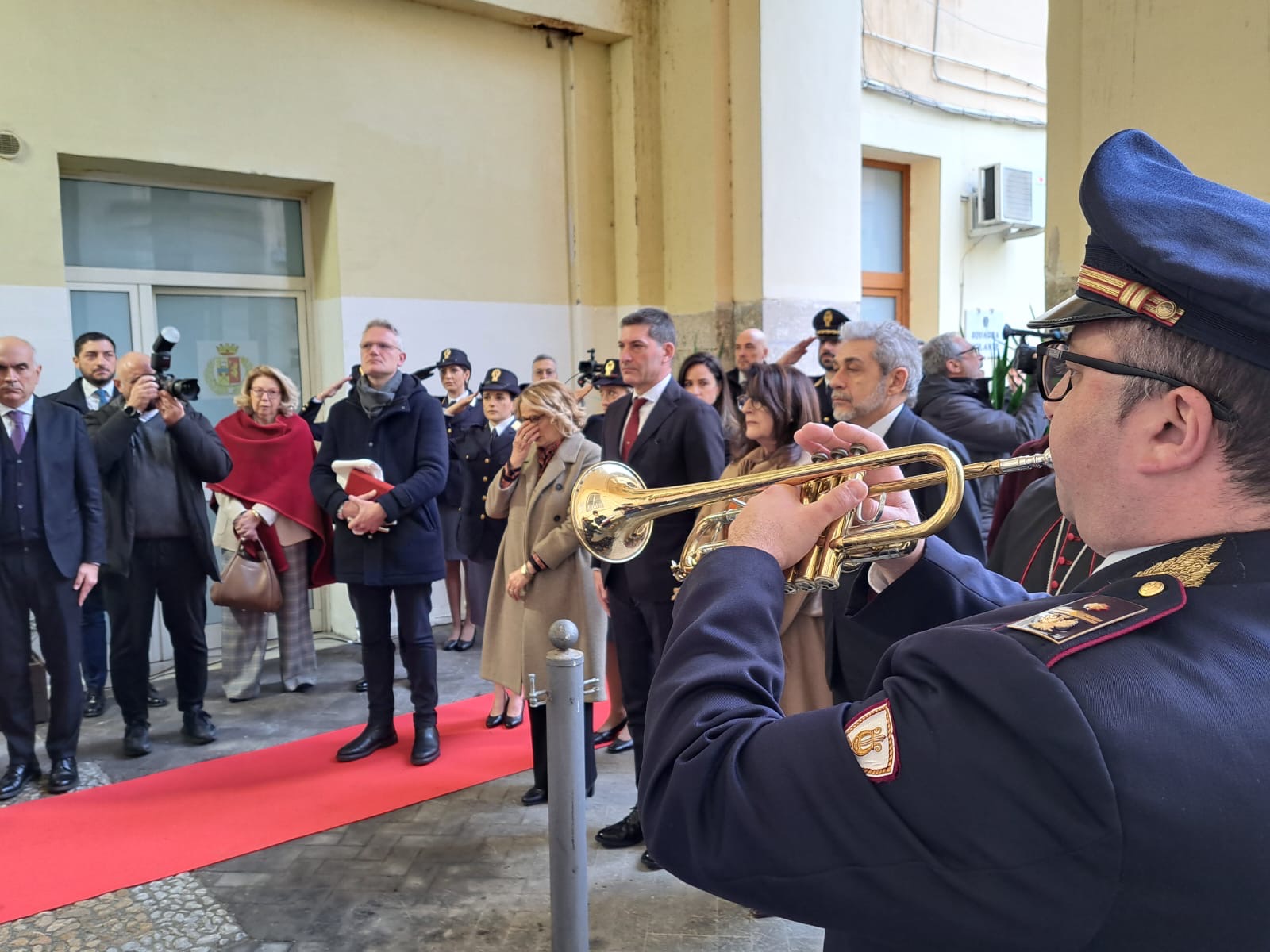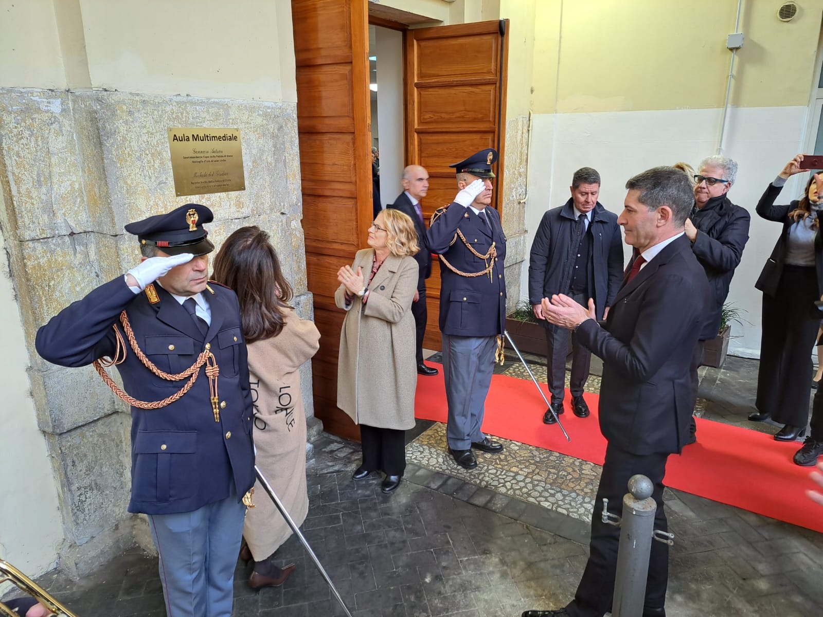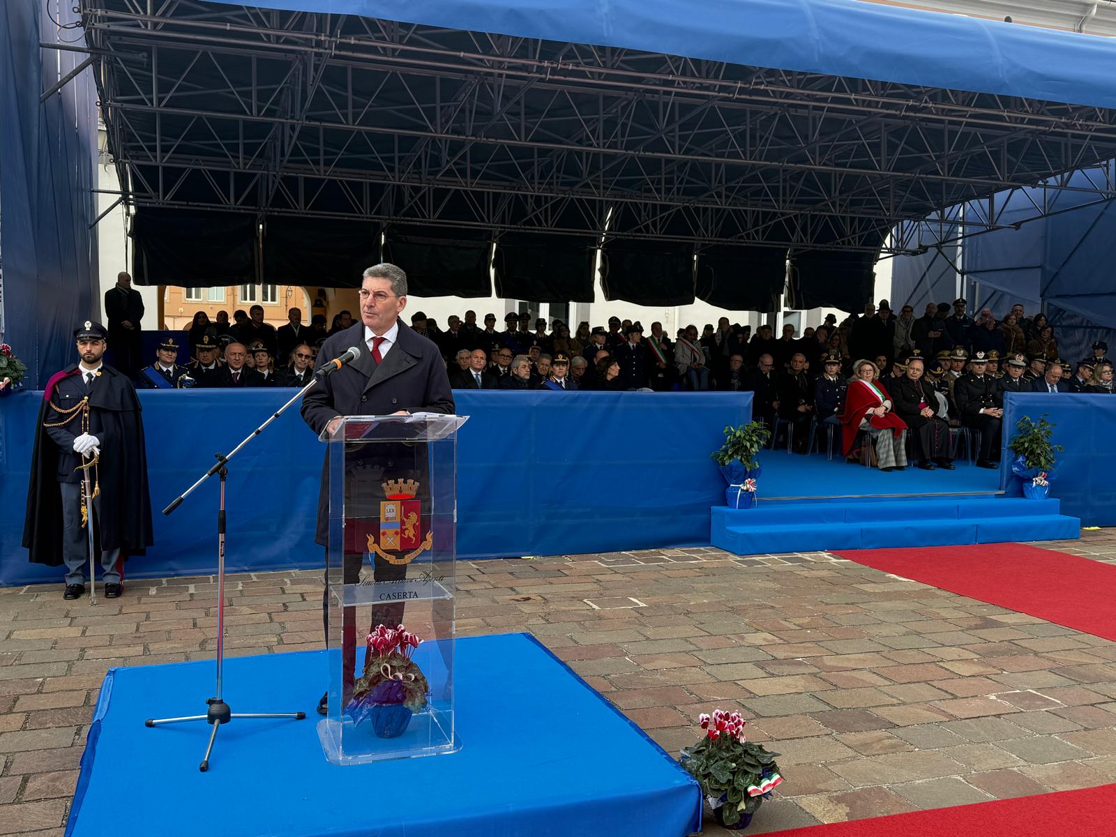 Alla scopertura della targa commemorativa ed alla benedizione da parte dell’Arcivescovo di Capua e Caserta, Mons. Pietro Lagnese, ha fatto seguito un toccante momento di silenzio, conclusosi con l’esecuzione degli squilli di tromba del personale della Banda della Polizia di Stato.
