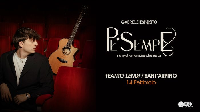 L’amore, nelle sue forme più autentiche e durature, sarà il protagonista della serata di San Valentino al Teatro Lendi di Sant’Arpino (CE). Sabato 14 febbraio [Prevendite attive quì Biglietti euro 20+d.p. Inizio concerto ore 21:00], sul palco salirà infatti Gabriele Esposito con il suo spettacolo “Pe’ Sempe – Note di un amore che resta”, un’esperienza artistica totale che mescola con successo musica dal vivo, recitazione e danza, dopo i sold-out registrati al Teatro Sannazaro di Napoli e al Teatro Sala Roma di Nocera Inferiore.