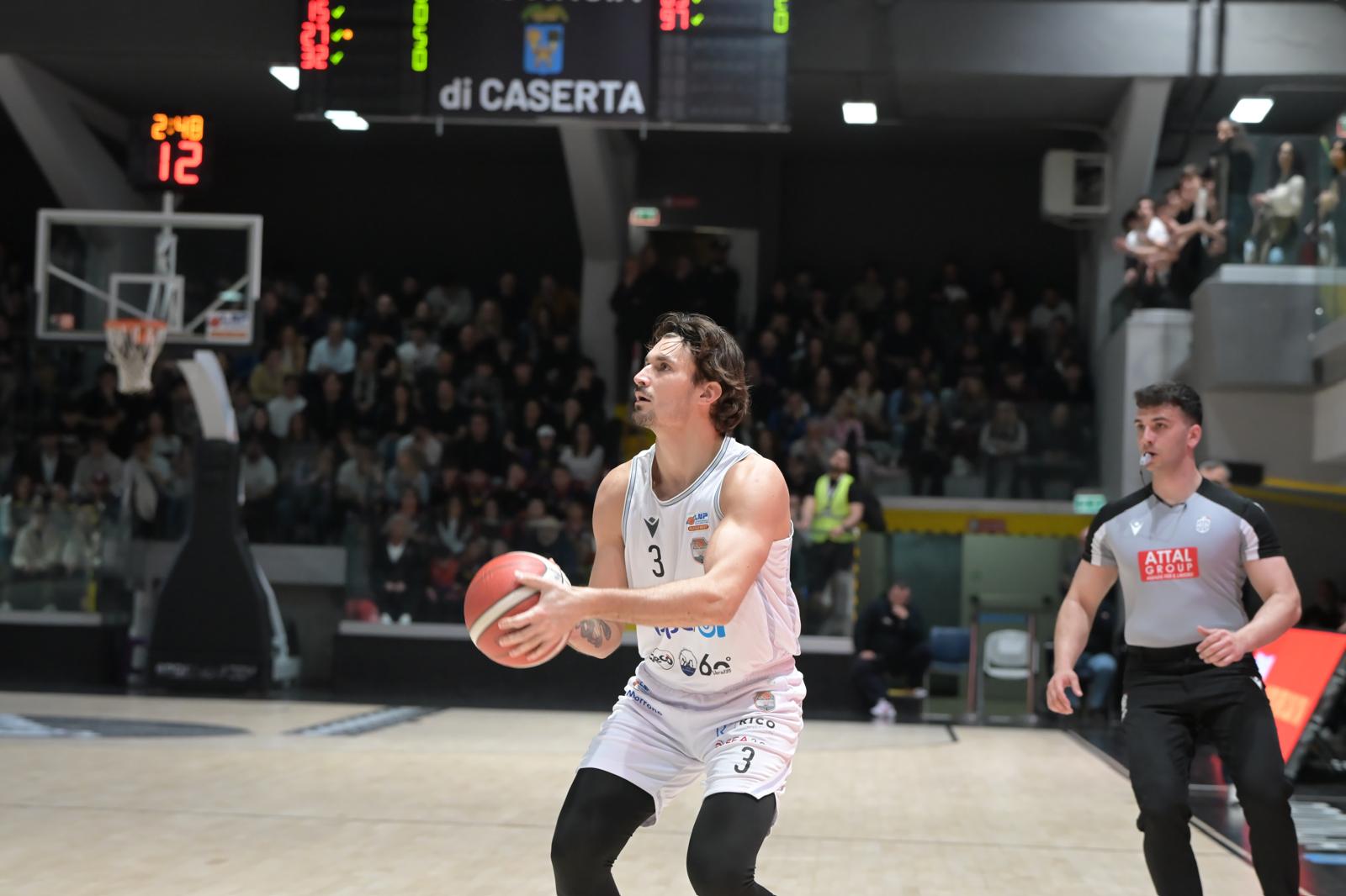 Nel terzo periodo il vantaggio dei casertani rimane costante in doppia cifra con un massimo di 19 punti, ridotti, poi, all’ultimo stop and go a 16 da un tiro sulla sirena dalla propria lunetta di Spizzichini.